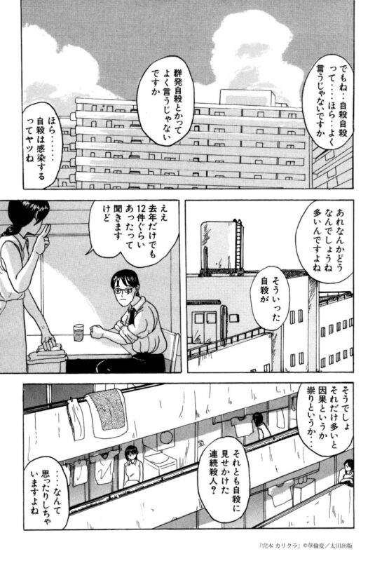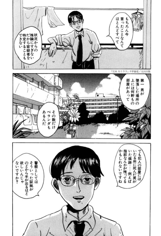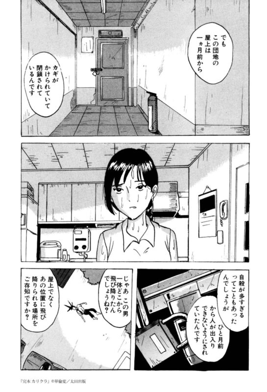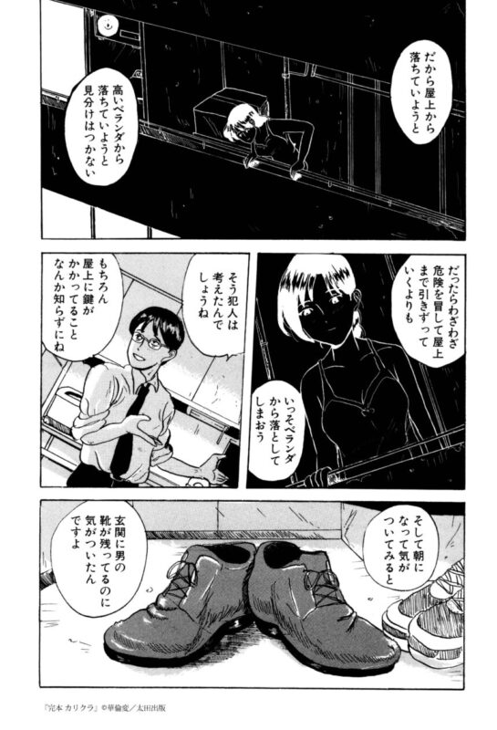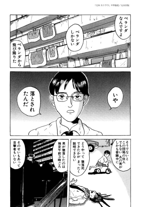 団地を訪れた謎の男の目的は? 華倫変「張り込み」 完本カリクラ 2025年10月8日 Twitter Facebook はてブ LINE 前へ次へ 123 第1回 : 私、実は昔 「闇の組織」に入っとったんですよ 華倫変「究極タイガーボンバーナイツ」 第2回 : 「バカ」なOLの行く末は…… 華倫変「赤い鎖骨」 第3回 : 団地を訪れた謎の男の目的は? 華倫変「張り込み」 『完本カリクラ』試し読み記事 第1回 : 私、実は昔 「闇の組織」に入っとったんですよ 華倫変「究極タイガーボンバーナイツ」 第2回 : 「バカ」なOLの行く末は…… 華倫変「赤い鎖骨」 第3回 : 団地を訪れた謎の男の目的は? 華倫変「張り込み」 『完本カリクラ』記事一覧 関連商品完本 カリクラ 華倫変倶楽部太田出版YondemillAmazon楽天honto本の詳細