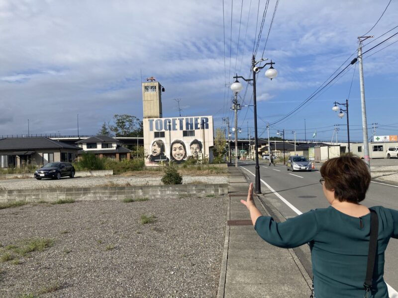 山根 ちなみにここは、元々ブティックだったんですけど、その店の向かいで、洋食屋さんをやっていた方の息子さんが「自分たちの街を悲惨に見られたくない。『おっ!』て思うような感じにしたい」っていう思いで東京の「OVER ALLs」っていうアートチームに依頼して、壊れた建物とか、もう使わないような建物でアートを作ろうっていうことで、避難指示が解除される前に始めたものです。「FUTABA Art District」というプロジェクトで、もともとはアメリカのスラム街で生まれた文化だそうです。
