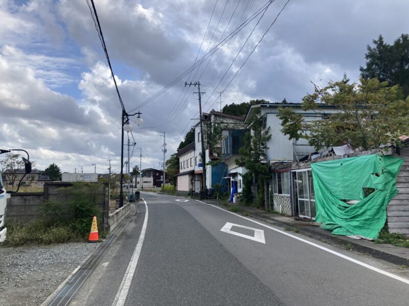 山根 この通りはもともとは商店街で、ちなみに、向こうの黄色っぽい建物はかつての役場の建物なんですけど……というか、ここから古い役場が見えるということはだいぶ周りの建物がなくなったんだな……。どんどん解体されていくんです。私は2014年の12月に双葉町に来たことがあるんですけど、電柱が傾いていて平衡感覚がおかしくなるような感じだったし、建物ももっと壊れてたし、まだ震災から3年しか経ってなかったから、壊れた建物もそのままだったんです。今はもう解体されて建物がないから、私はもちろんだし、地元の人も多分もうどこに何があったかすぐには思い出せないと思うんですが。