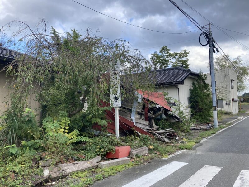 ここはお寺だったんですけど、2011年の震災のときはここまで壊れ方がひどくなかったんです。福島って3年前に震度6の地震があって、そのときにこれぐらいひどくなった。震災の後はまだ屋根がちゃんと建っていたんですよね。震災ではなんとかなっていたけど、そのあとの地震で壊れたっていうところもけっこうあって。