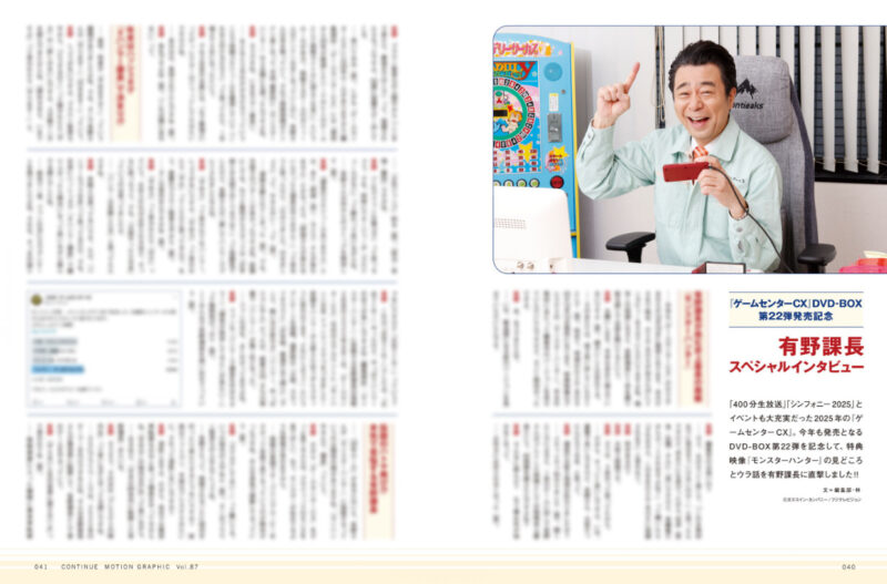 『ゲームセンターCX』特集では、DVD-BOX22発売を記念して有野課長のロングインタビューから「ゲームセンターCX シンフォニー2025」まで、2025年のGCCXを振り返る。