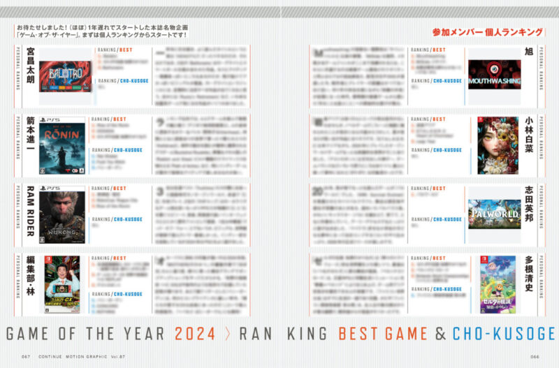 第2特集は「GAME OF THE YEAR 2024」。不定期刊行となった本誌は、遅ればせながら2024年のベスト&超クソゲーを発表するほか、ランキング決定座談会も掲載された。