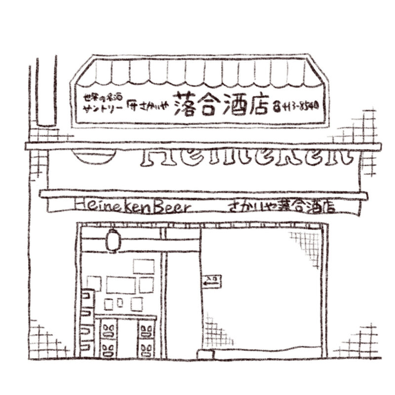 気ままに古着屋に寄って、閉店セールなのをいいことにうっかり買いものをしすぎたりしつつ、南口の商店街をふらふらしていると、横道に「落合酒店」という看板が見えた。確か気になっていた一軒で、店頭で角打ちできる店のはず。スタートにはちょうどいい。それにしても、何度も通ったことのある通りだけど、こんな場所にこんな雰囲気のいい角打ち、あったかな?